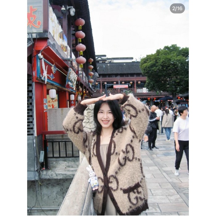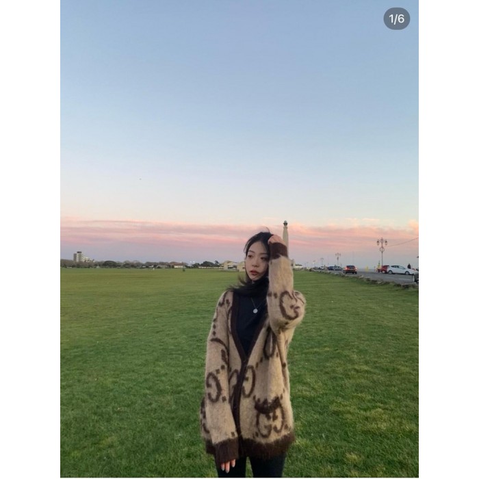 Gucci グッチハイブランドカーディガン ニット オーバーサイズトップス アウター レディース 羽織 ボア 長袖 vネック アーガイル柄 前開きボタン オーバーサイズ ゆったり カジュアル 着痩せ おしゃれ 秋 冬 春