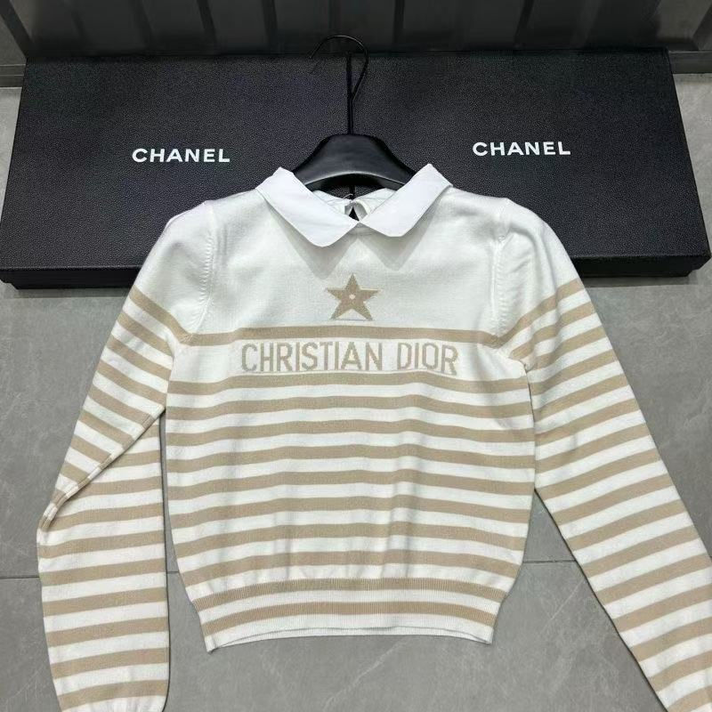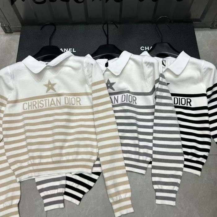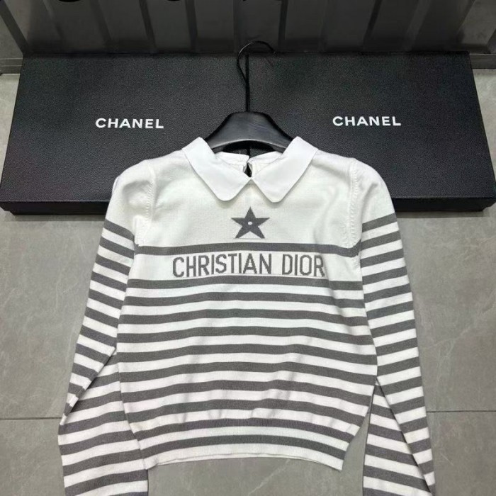 Dior ディオールハイブランドセーター レディース 長袖 ニット トップス 襟付き バイカラー S - L ブラウス ケーブル編み 上品 柔らか 暖かい 伸縮性 着回し 着痩せ セーター 普段着 通勤 秋 冬
