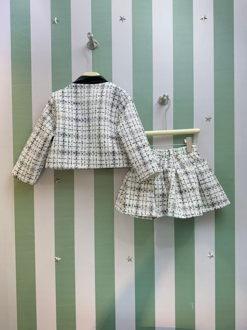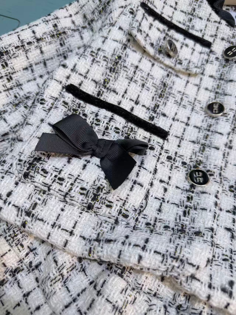 Chanel シャネルハイブランド子供スーツ ツイードスーツ キッズ セット フォーマルスーツ ガールズ スカート ジャケット ショート丈 子供服 キッズセッアップ 90¬140cm 可愛い チャック柄 お洒落 卒業式 入学式 幼稚園 七五三 結婚式 発表会