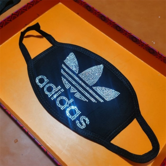 アディダス 布マスクハイブランドAdidas ブラック 洗えるマスク キラキラ ラインストーンロゴ 繰り返しマスク 防臭 抗菌 快適マスク