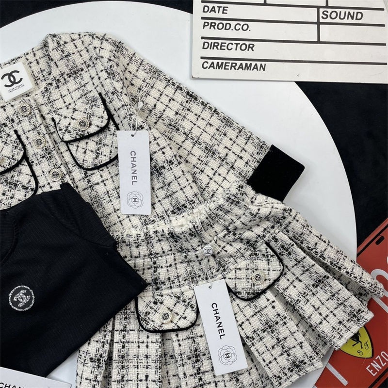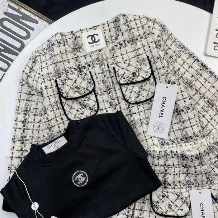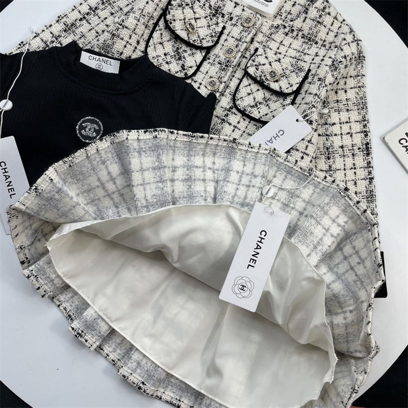 Chanel シャネルハイブランド女の子スーツ フォーマルセット 3点セット 100 - 150cm 子供スーツ ガールズ ツイルセットアップ ワンピース tシャツ 発表会 卒業式 ピアノ キッズフォーマル フォーマル 女児スーツ