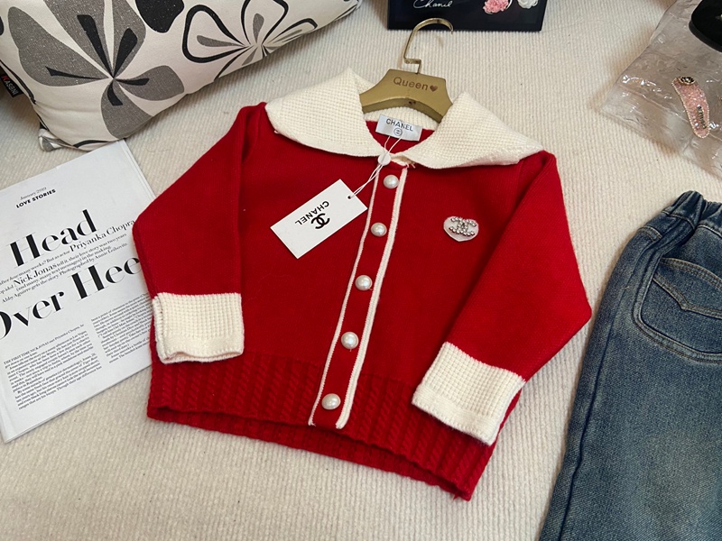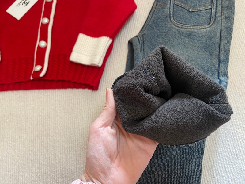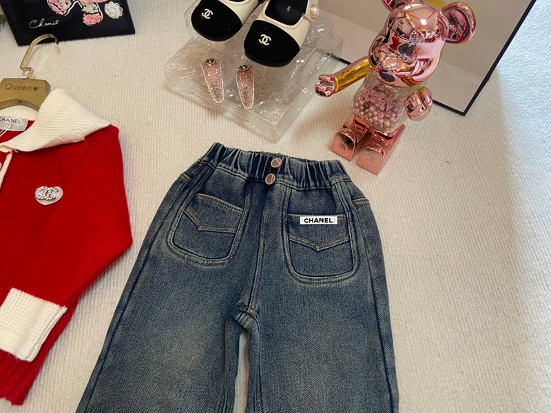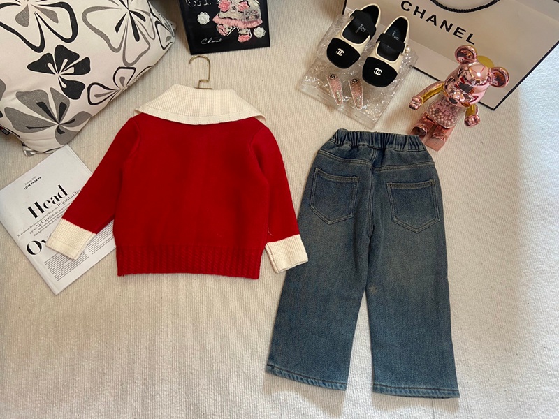 Chanel シャネルブランド子供服 女の子 セーターコート デニムパンツ 上下2点セット ガールズ長袖ニット デニムズボン(裏起毛) キッズ コート トップス ジーンズ ワイドパンツ ゆったり ハイウエスト 着痩せ 90¬140cm