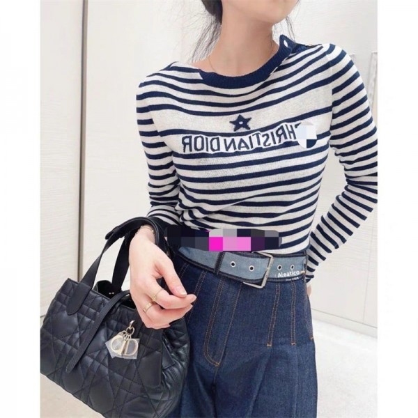 Dior ディオールハイブランド ニット セーター レディース ストライプ トップス プルオーバー カットソー リブ 丸首 着痩せ 長袖 シンプル 柔らかい 上品 おしゃれ 秋 冬 S - L