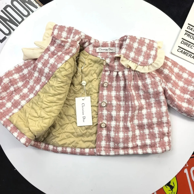 Dior ディオールブランド子供服中綿ジャケットガールズ かわいい中綿コート 蝶結び付き キッズ 秋冬アウター 中綿ジャケット 厚手 暖かい カジュアル 韓国 90-140cm
