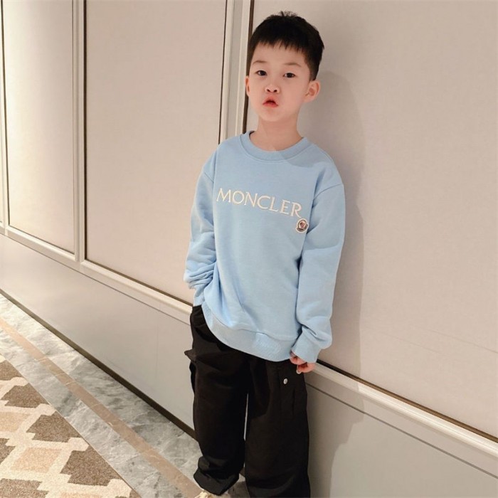 Moncler モンクレールブランド子供服 男の子 パーカー トレーナー カットソー パーカー 100 - 160cm キッズ スウェット ブルー 綿 クルーネック ボーイズ トレーナー アクティブウェア 春秋 可愛い 通学 通園