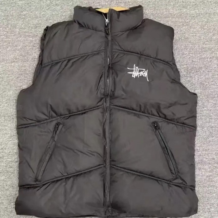 商品名:ステューシーダウンベスト メンズ Stussy中綿ベスト レディースアウター 防寒 スタンドカラー 半袖 流行り 男女兼用 ゆったり 暖かい 厚手 軽量 春 秋 冬 カジュアル 人気 おしゃれ 無地 M-3XL 大きいサイズ 通勤 通学 アウトドア
