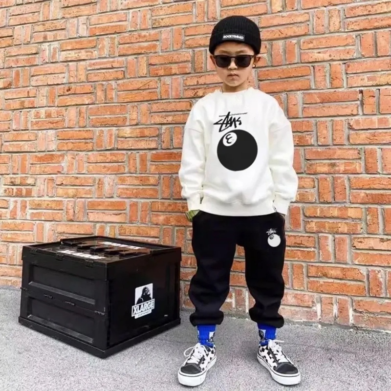商品名:ステューシー子供服 男の子 スウェット上下セット Stussy 丸首トップス+パンツ キッズ服 ジャージ 長袖 スウェット キッズ服 冬秋 厚手 上下セット カジュアル ダンスウェア おしゃれ ジュニア ボーイズ