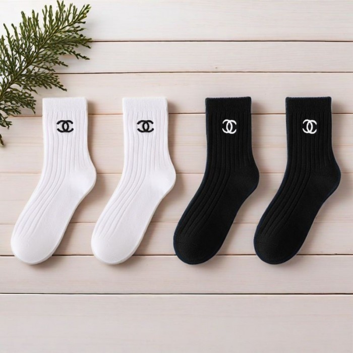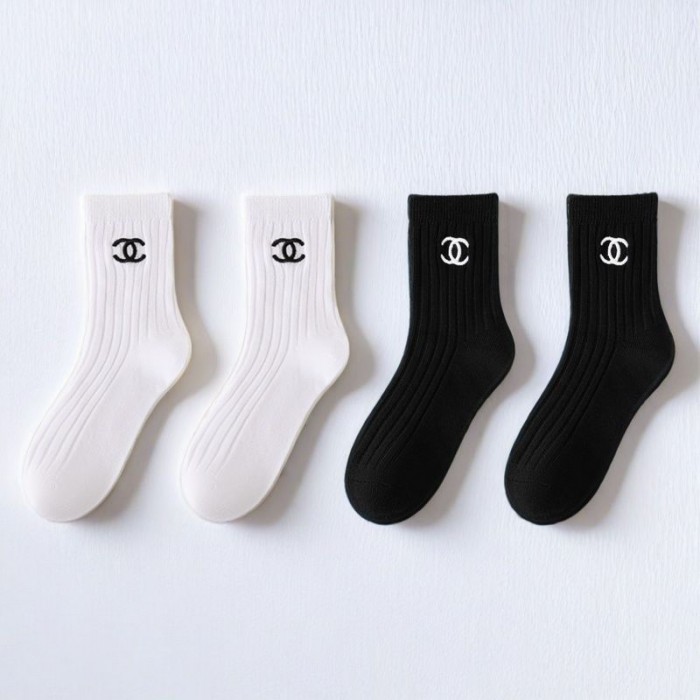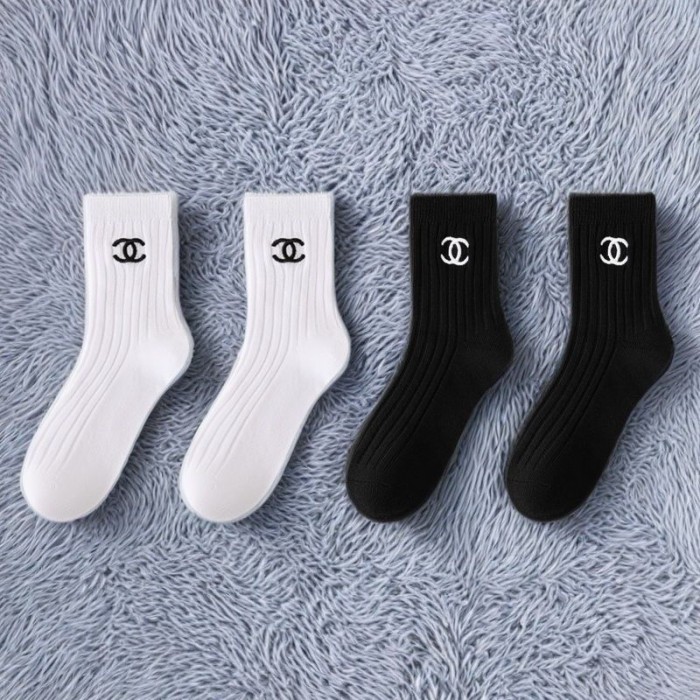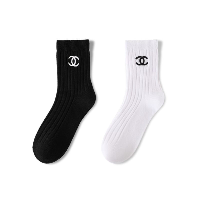 Chanel シャネルレディース向け 靴下 かわいいコットン 靴下 メンズ 通気性ブランドミドルソックス 高品質ブランドソックス 男女兼用 ファッション
