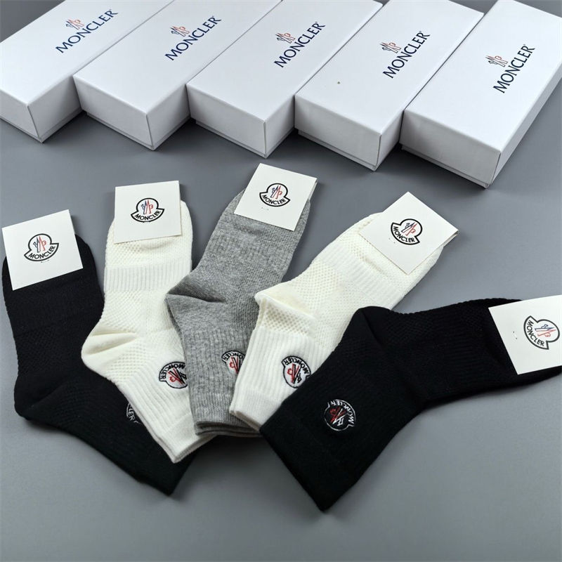 Moncler モンクレールハイブランド ソックス 綿製レディース向け 靴下 かわいい浅口ソックス 女の子好き 韓国ブランドソックス 男女兼用 ファッション 5足セット