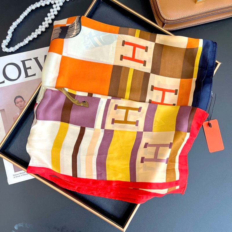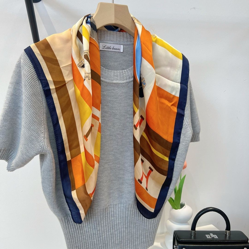 Hermes エルメスブランドパロディスカーフ レディース シルク ハンカチ バンダナ 70cm シルクスカーフ 多機能 日焼け止め 防寒 バッグ DIYシュシュ 髪飾り アクセサリー 誕生日 プレゼント 春夏秋冬