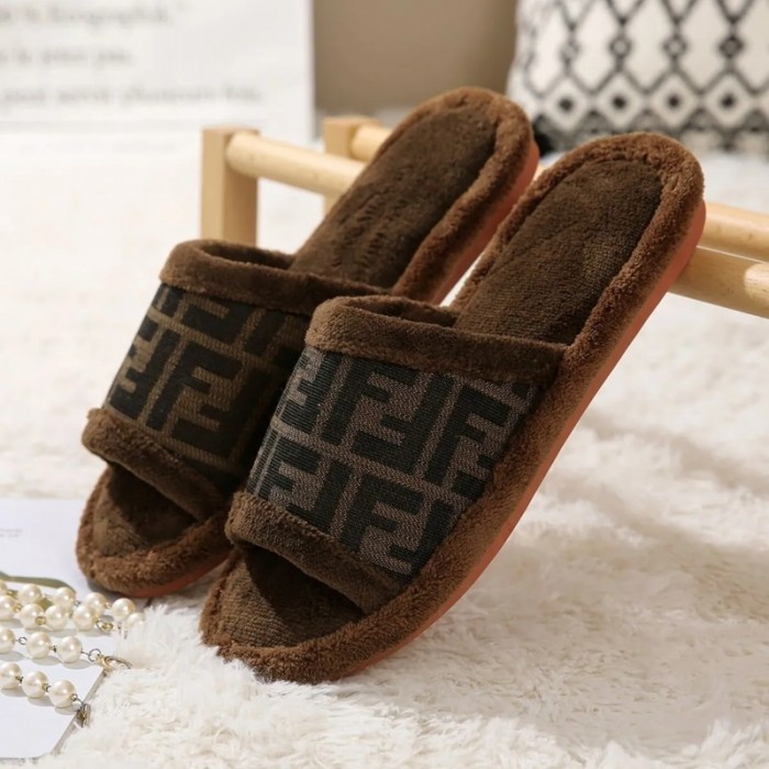 Fendi フェンディハイブランドもこもこルームシューズ メンズ ファー ボア ふわふわ スリッパ 滑り止め 室内履き 240 ¬275cm サンダル あったかい 秋冬 かわいい お家用 男女兼用