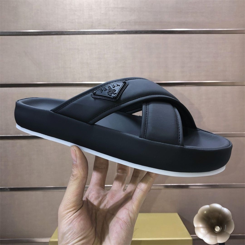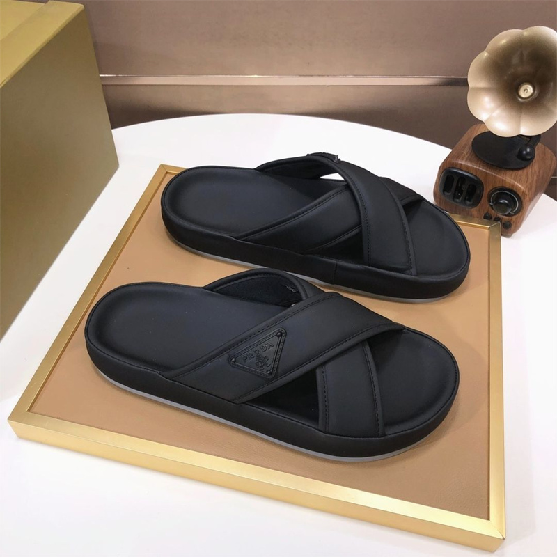 Prada プラダハイブランドスリッパ メンズ レザーサンダル 革 ビーチサンダル クロスストラップ 軽量 シンプル 男性用 サマーシューズ 通気 245¬270mm 柔らかい 室外 室内 大きいサイズ 滑り止め 蒸れにくい 海辺 砂浜 フラット カジュアル