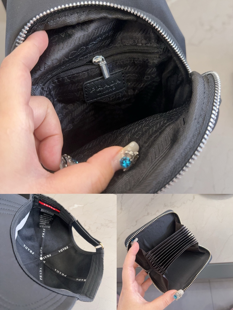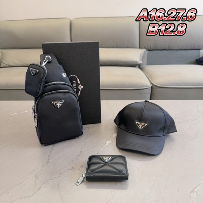 Prada プラダブランドショルダーバッグキャップ財布3点セット 女性 ボディバッグ 野球帽子 ハイブランドレディースメンズバッグブランドカジュアルブランドミニバッグコーデ