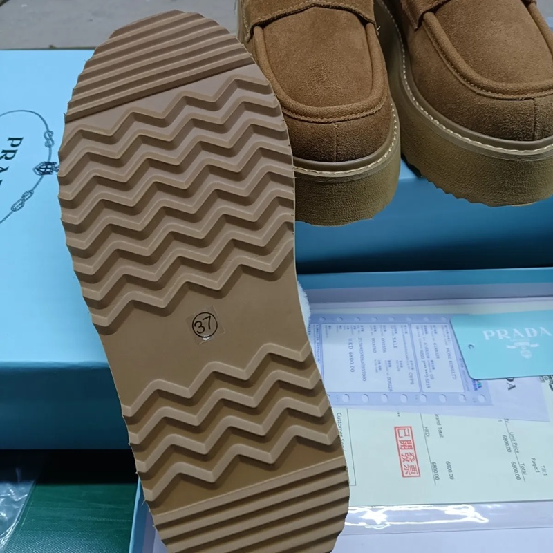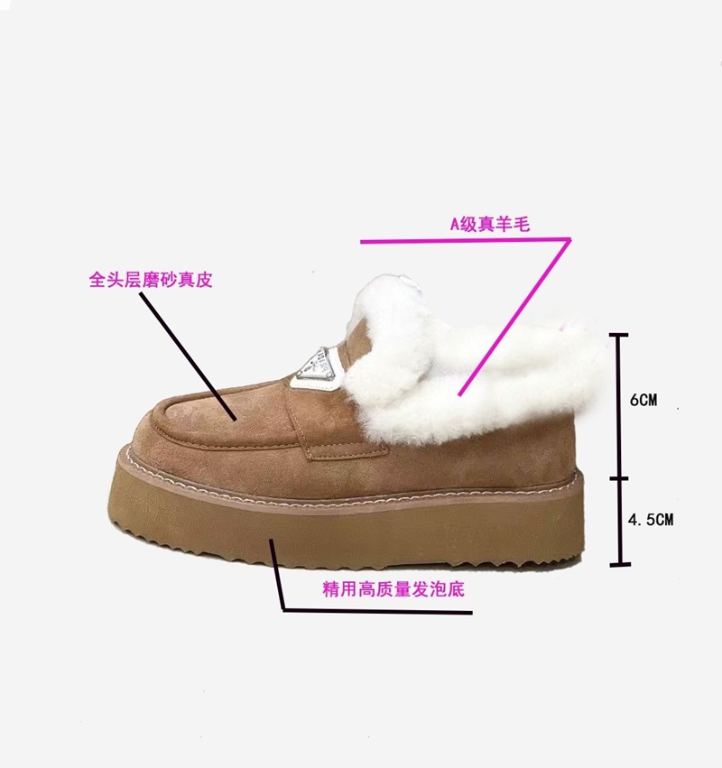 商品名称:プラダ ムートン ローファー モカシン Pradaボアシューズ レディース 防寒 内側ファー 暖かい あったか ボア靴 ブーツシューズ 冬