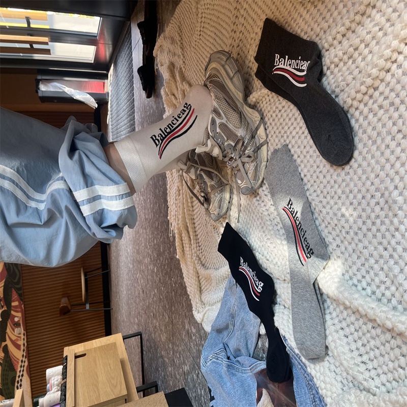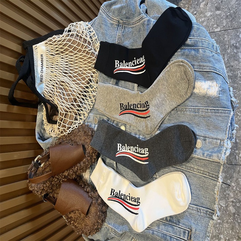 Balenciaga バレンシアガレディース向け 靴下 かわいいブランド ソックス 大人気コットン 靴下 メンズ 通気性 ミドルソックス 女の子好き 韓国