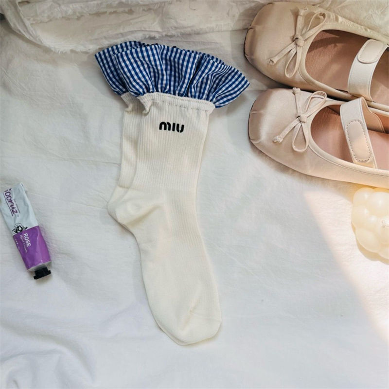 ミュウミュウ MiuMiuレディース向け 靴下 かわいいブランド ストッキング 大人気浅口ソックス 女の子好き 韓国上質な コットン ソックス くつした
