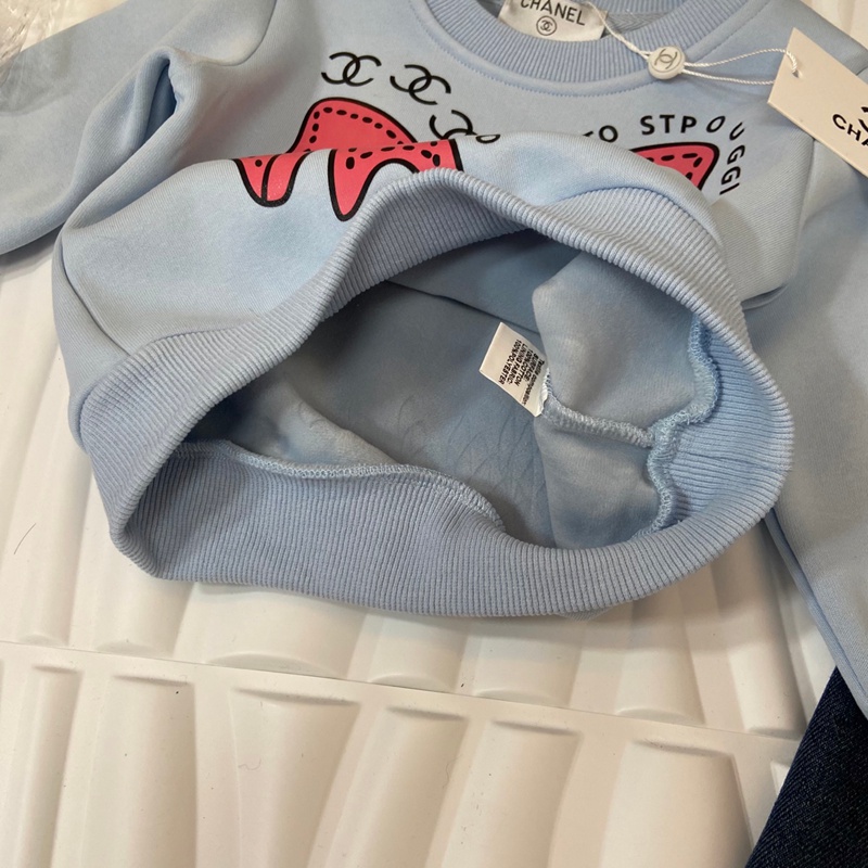 Chanel シャネルハイブランド子供服 キッズ 女の子 セットアップ 長袖 パーカー デニムパンツ 子供 上下セット 春 秋 ジャージ 女の子 裏起毛トレーナー デニムパンツ セットアップ キッズ カジュアル 韓国 お洒落 小学生 女の子服 90¬140cm