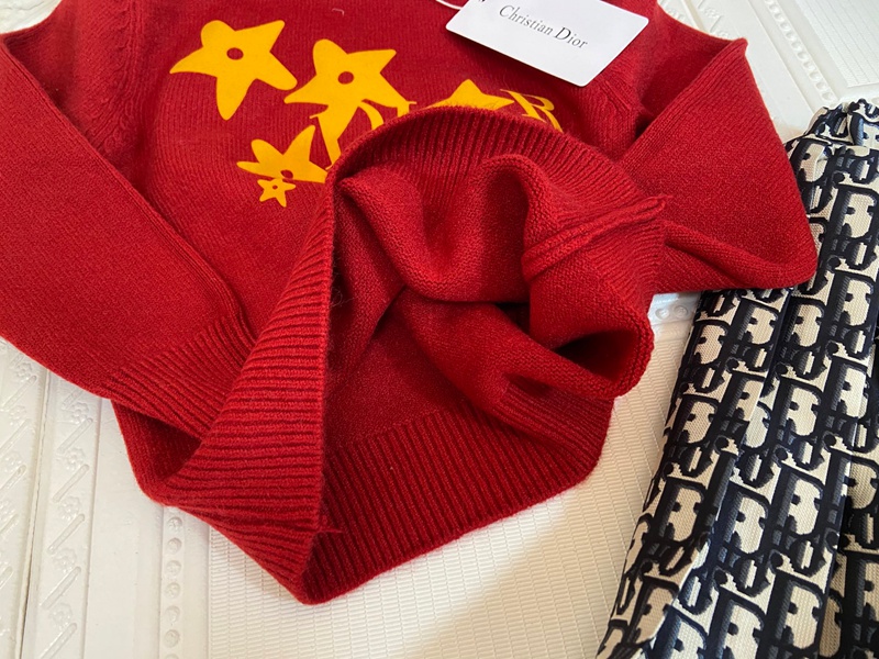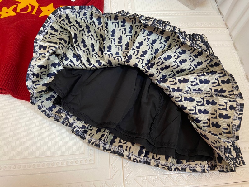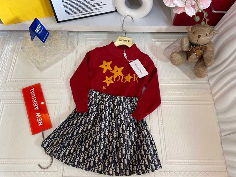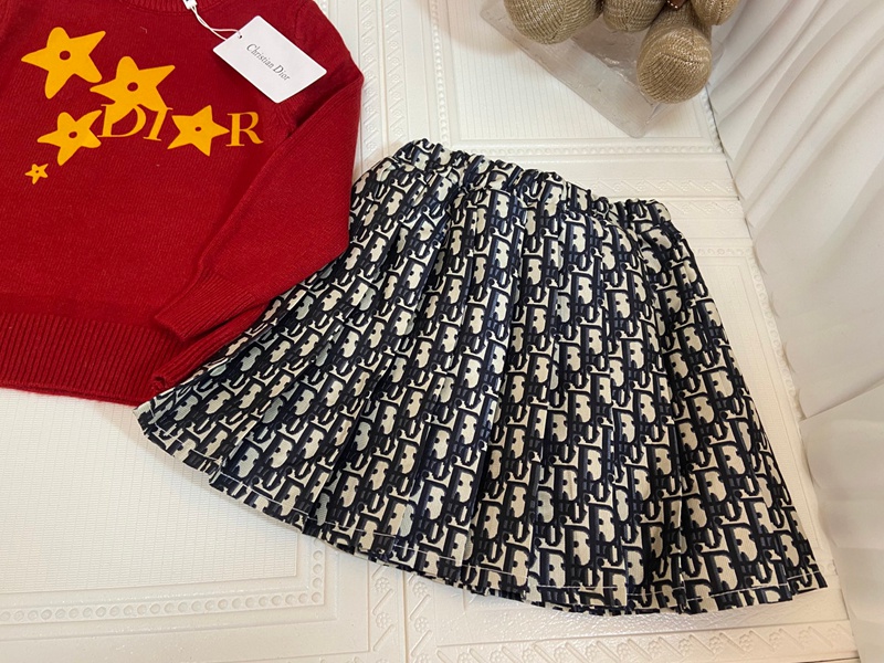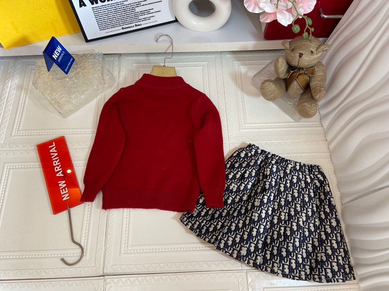 Dior ディオールハイブランド子供服 キッズ服 女の子 上下セット セーター+プリーツスカート ニットスーツ 長袖 トップス ニット 柔らかい おしゃれ 可愛い 子供スーツ 春 秋 100¬150cm