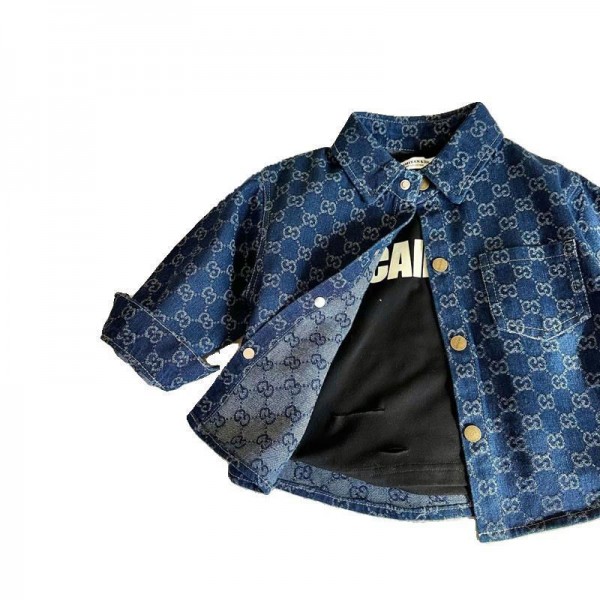 Gucci グッチ ブランド デニムジャケット 女の子 子供服 ジャケット シャツ 長袖 デニムコート Gジャン ガールズ キッズ ポケット かわいい 春秋 カットソー 定番 ジャンパー 90 - 140cm