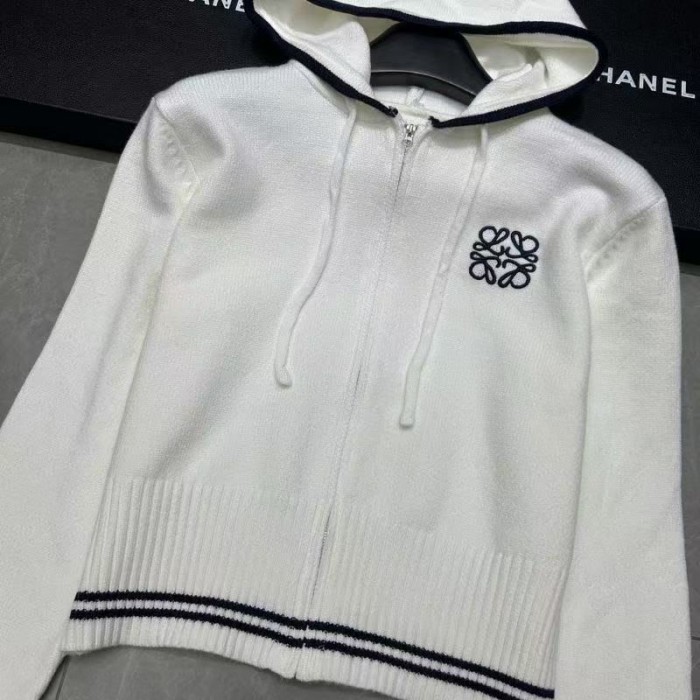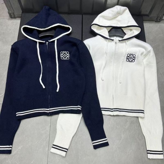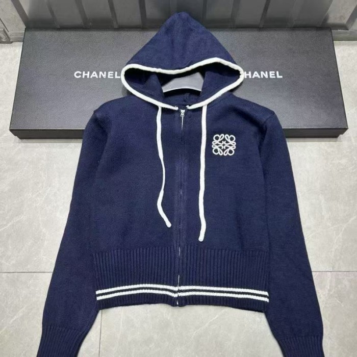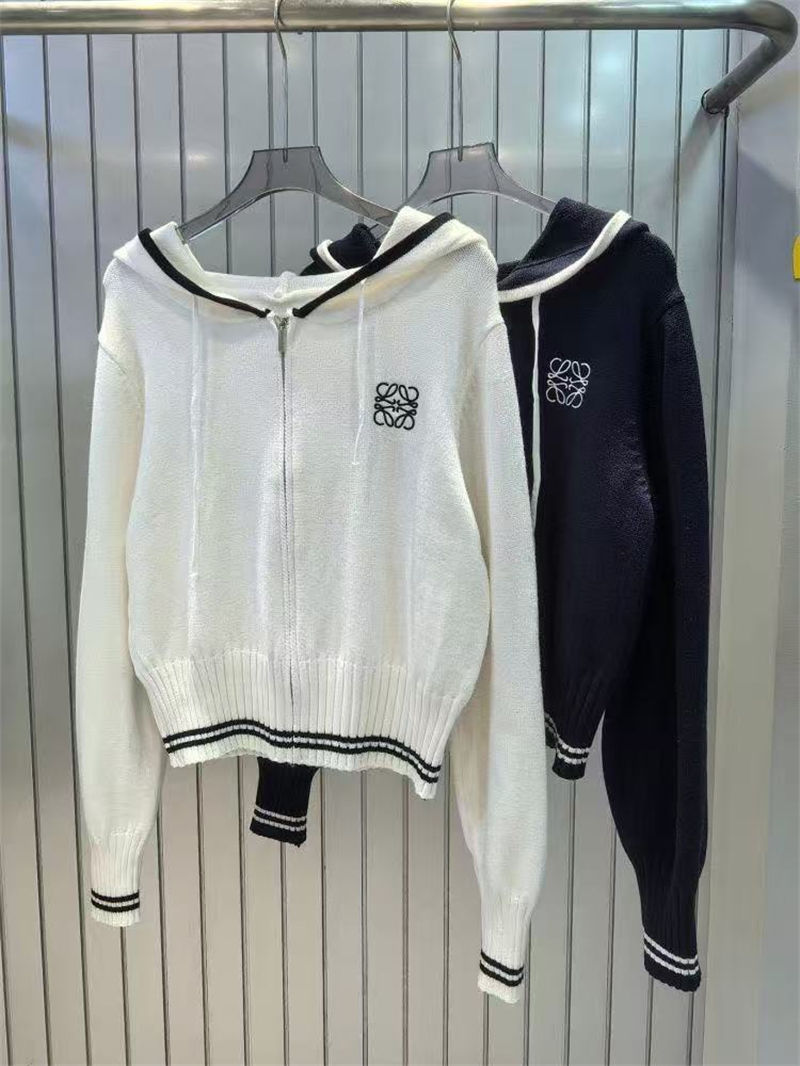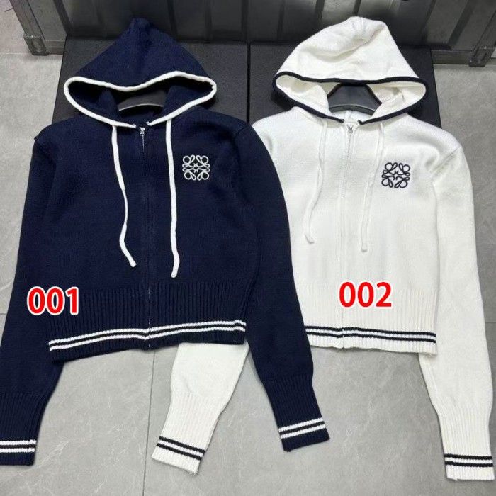 LOEWE ロエベブランド おしゃれ ニット トップス カーディガン セーター S - L カットソー レディース ジップアップ 長袖 襟付き セクシー 無地 服 リブニット リブ編み ジップカーディガン ニットカーディガン