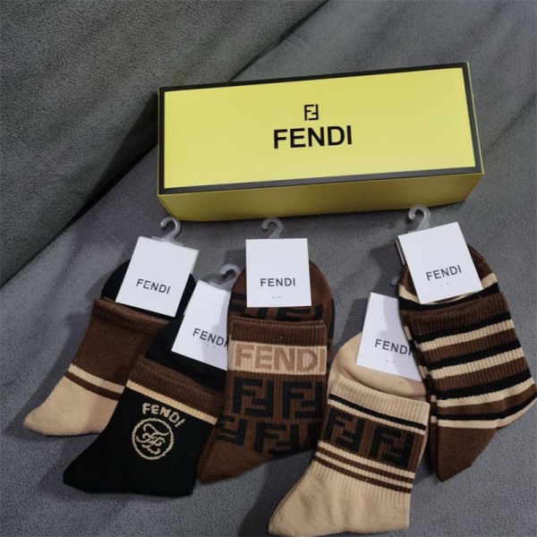 Fendi フェンディハイブランド ソックス 綿製レディース向け 靴下 かわいいブランドくつした 5足セット 大人気ブランドソックス 男女兼用 ファッション