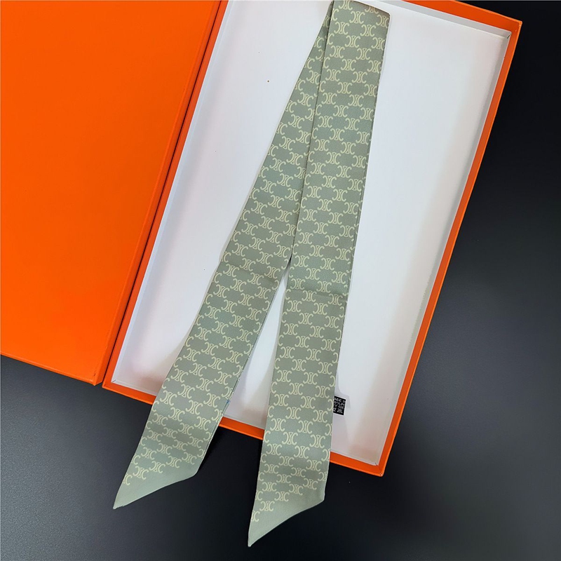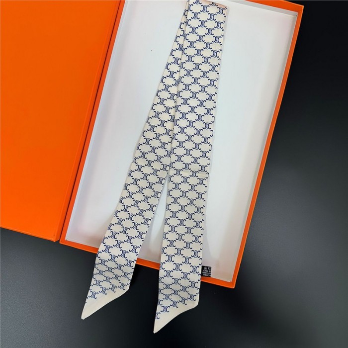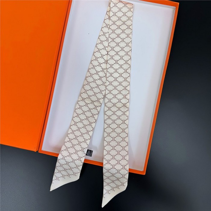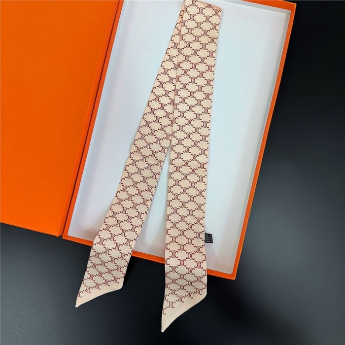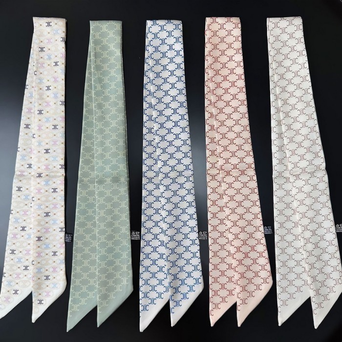 CELINE ブランドセリーヌ風 細長スカーフ ツイリー ネクタイ型 シルク風 5色 バッグリボン ヘアアクセサリー レディース 高級感 90cm