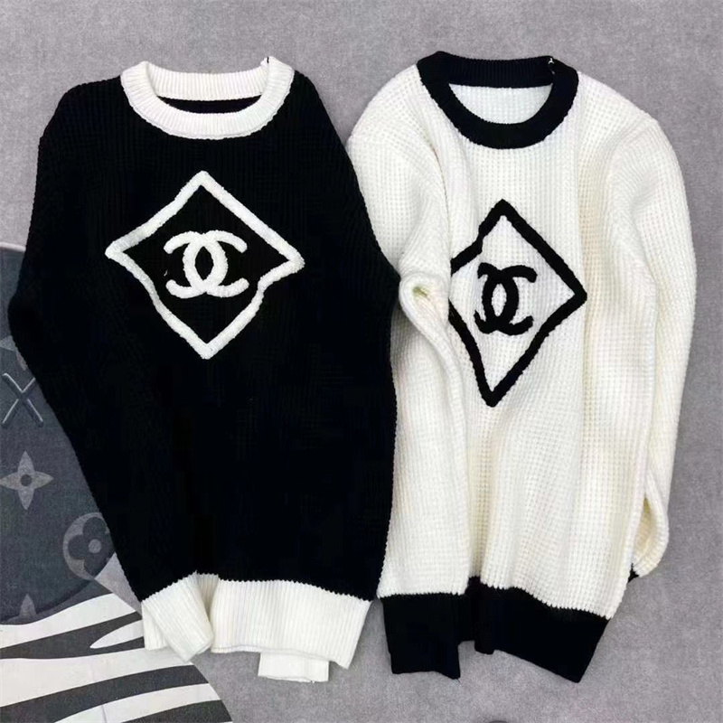 シャネル セーターハイブランド Chanel レディース ブラック ホワイト ニットセーター 秋冬 ゆったり カジュアル 上着 セーター 普段着