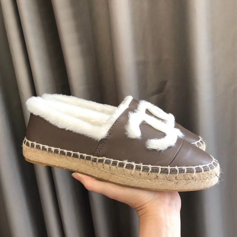 シャネルブランドローファー靴レディース冬 もこもこ 暖かい フラットシューズ Chanel かわいい 裏起毛 歩きやすい パンプス コンフォートシューズ フェイクファー スリッポン