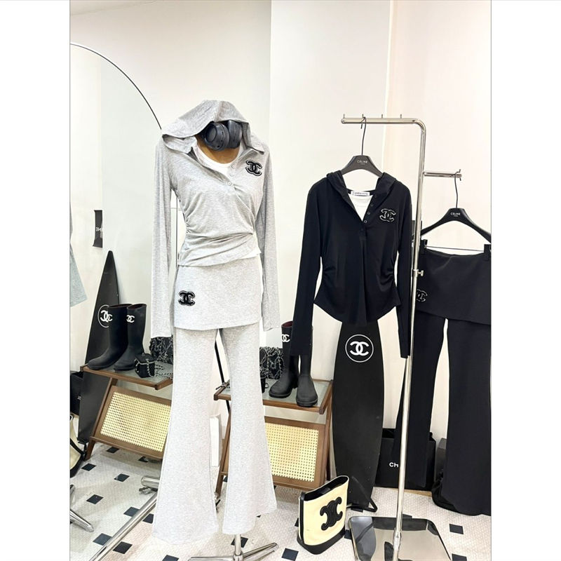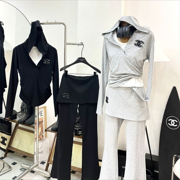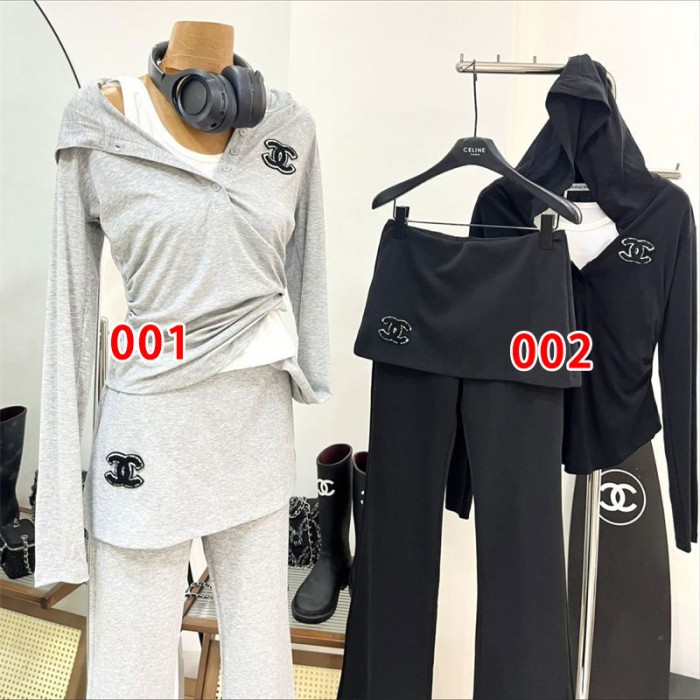 製品名:Chanel ジャージ スウェット 上下 セット レディース フード シャネル長袖ブラウス ロングパンツ 通勤 通学 パーカー 3点セット 部屋着 ルームウェア おしゃれ 可愛い
