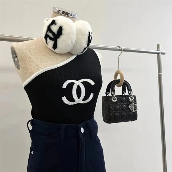 シャネルブランド ベストレディース 定番ホワイトブラック セクシー 片ショルダーベスト ゆったり 着瘦せ 薄手 ニットベスト