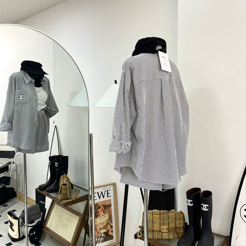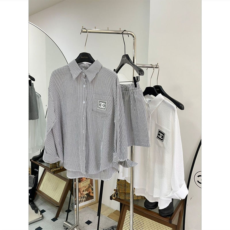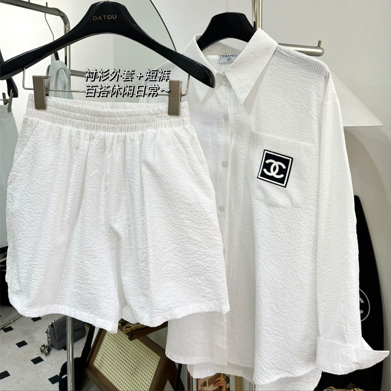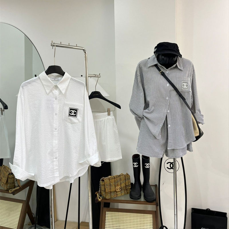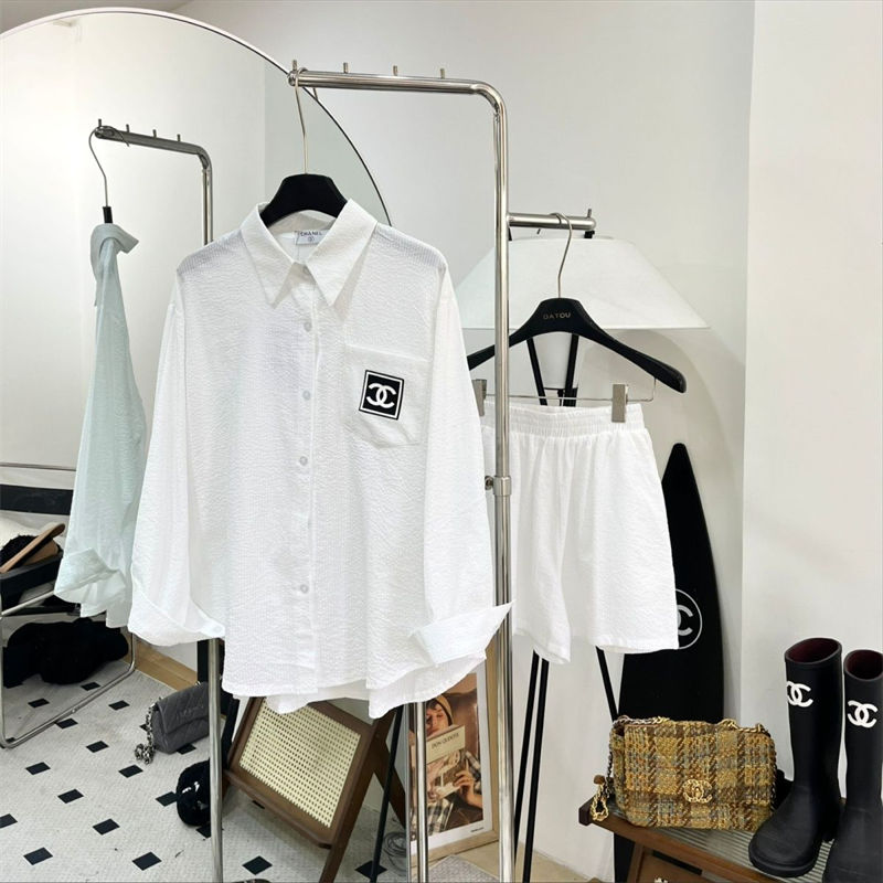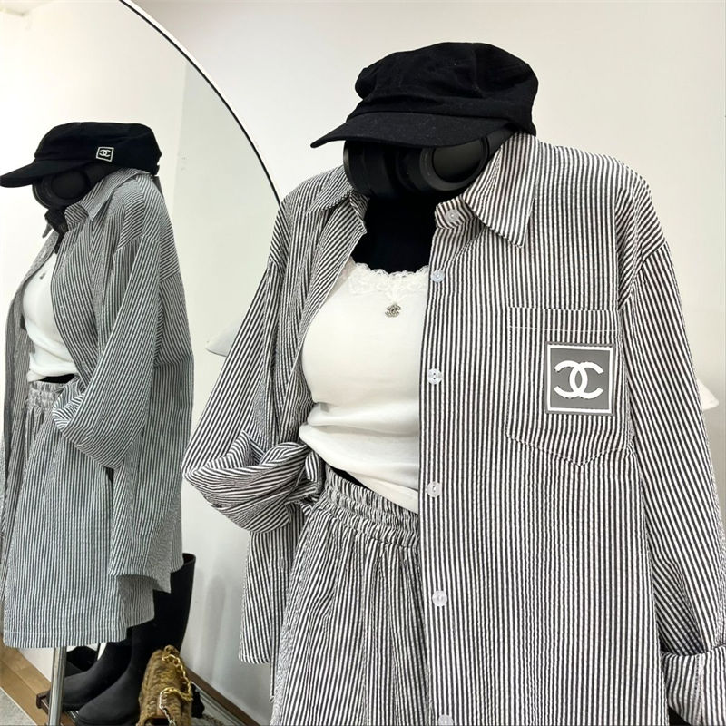 シャネルレディース 長袖シャツ 短パン セットアップ 2点セットアップ CHANEL 長袖 ネルシャツ ゆったり 大きいサイズ トップス ジャケット ブラウス 通勤 通学 春 秋 冬カジュアル