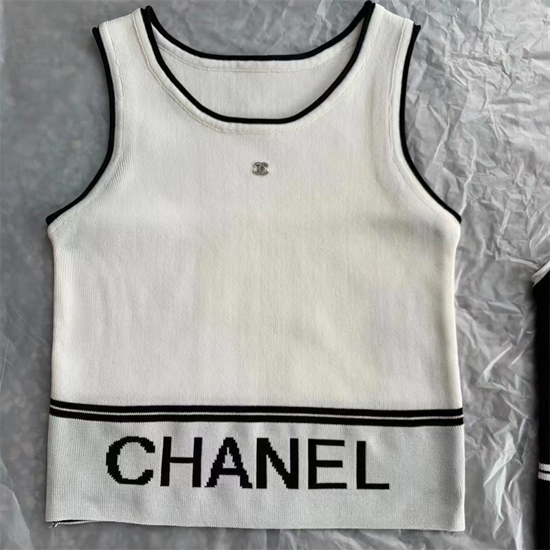 シャネルブランドベストレディースおしゃれ ノースリーブ ベスト定番 黒 白 肌に優しいベスト トップス 着瘦せ スリム コーデ インナー ベスト