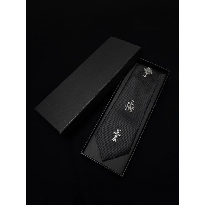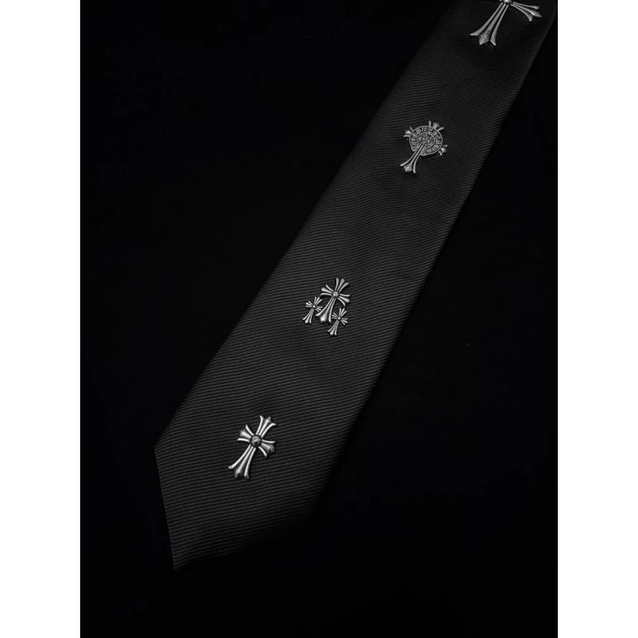 製品名:クロムハーツネクタイ 十字架の金具 流行り ブラックネクタイ Chrome Heartsネクタイ カジュアル ブランド プレゼント メンズ おしゃれ柄 面接 就活 成人式 成人の日 洗濯