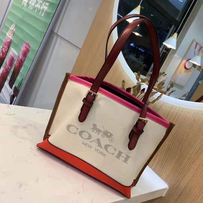 コーチブランドレディースハンドバッグおしゃれ 高品質 キャンバス手提げカバン耐用 丈夫 大きなサイズ収納 斜め掛けバッグ