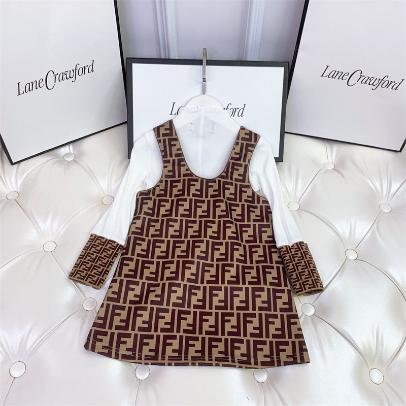 フェンディブランド長袖シャツ ワンピース 2点セット かわいい 女の子 ガールズ キッズ ドレス 子供服 セットワンピース FF定番プリントコットン高品質 スカート シャツ 通園 通学 受験
