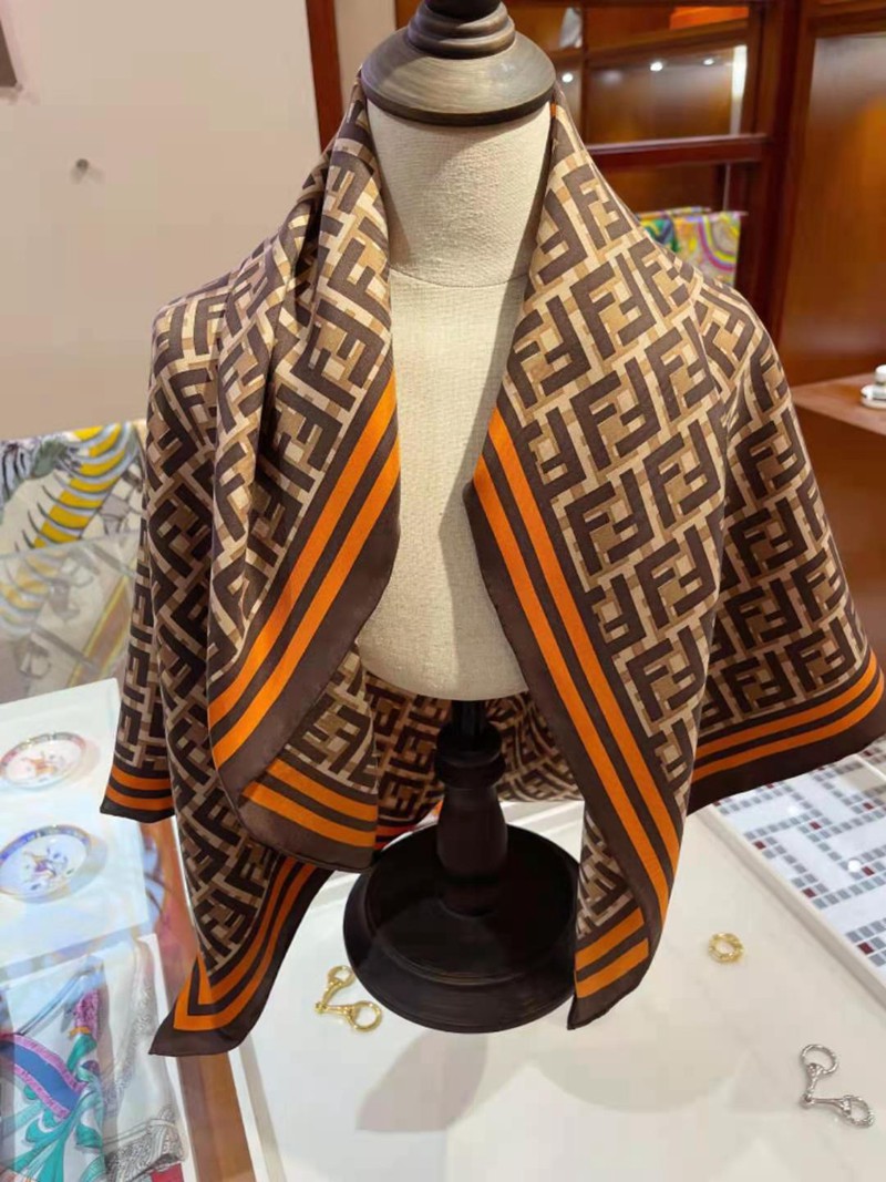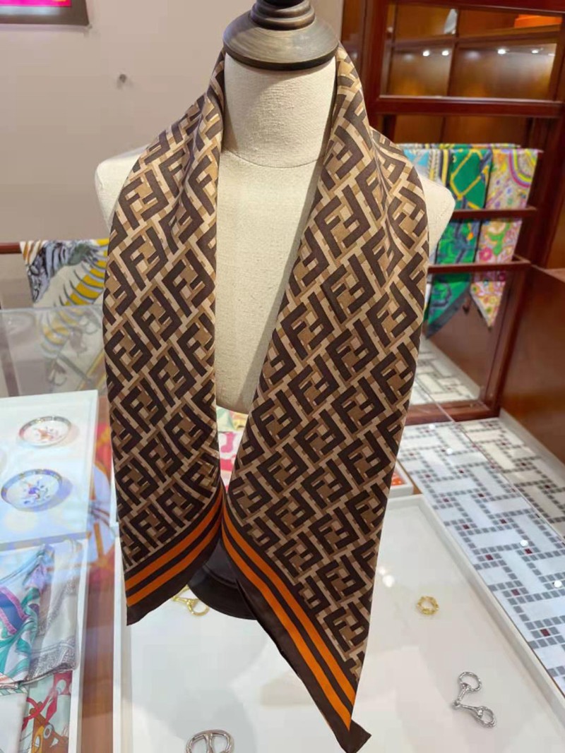 フェンディブランド風シルクスカーフファッションヴィンテージFFロゴマフラー女性向け経典FENDIコピー通販スカーフ春秋適用