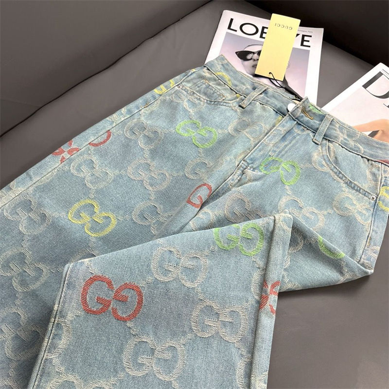 製品名: Gucci デニムパンツ デニムパンツ ジャガード柄 グッチワイドパンツ フレアパンツ ストレート ジーンズ ジーパン ビジュー レディース ボトムス ウォッシュ ブリーチ