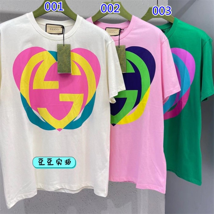 グッチ ブランド ティーシャツ おしゃれ ハート柄 半袖 tシャツ 高品質 肌に優しい 柔らかい 丸首 tシャツ 通気性がよい 吸汗性がよい 男女兼用 T-Shirt
