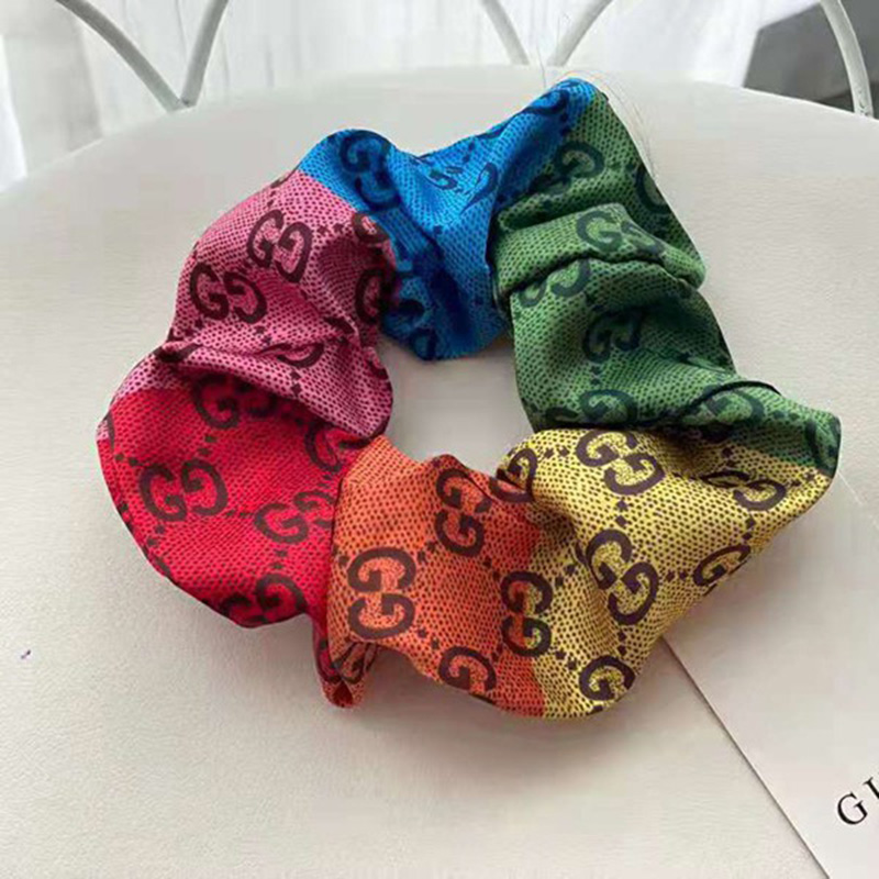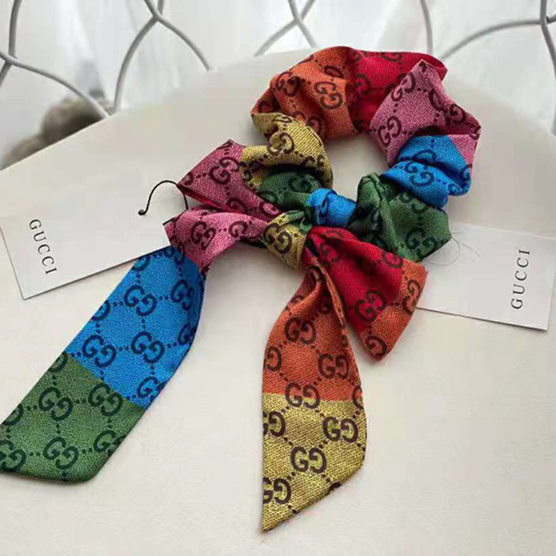 グッチブランドレディースヘアアクセサリーファッションレインボー色ヘアゴム快適 立体クロスヘアバンドおしゃれ多機能スカーフ