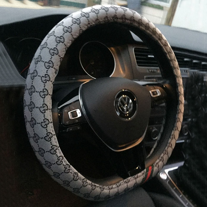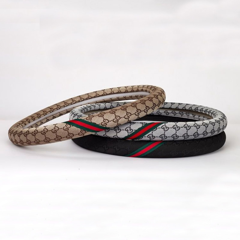 グッチブランドハンドルカバー 軽自動車 普通車 ステアイングカバー 汎用 サイズ 36~38cm 通気性いい 滑り止め 手触りがよい アクセサリー 無臭