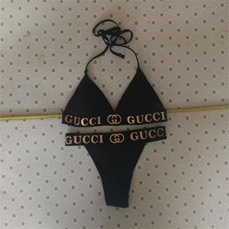 ハイブランドグッチ ビキニ 水着 レディース 夏 ブラックセクシービキニ 三角ビキニ ホルターネック上着 スイミングウェア 海辺 ビーチ 温泉用