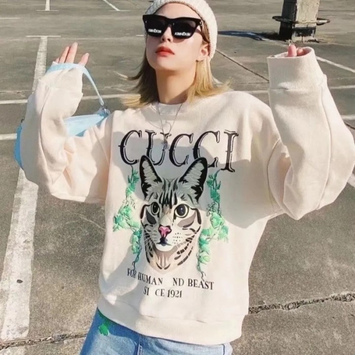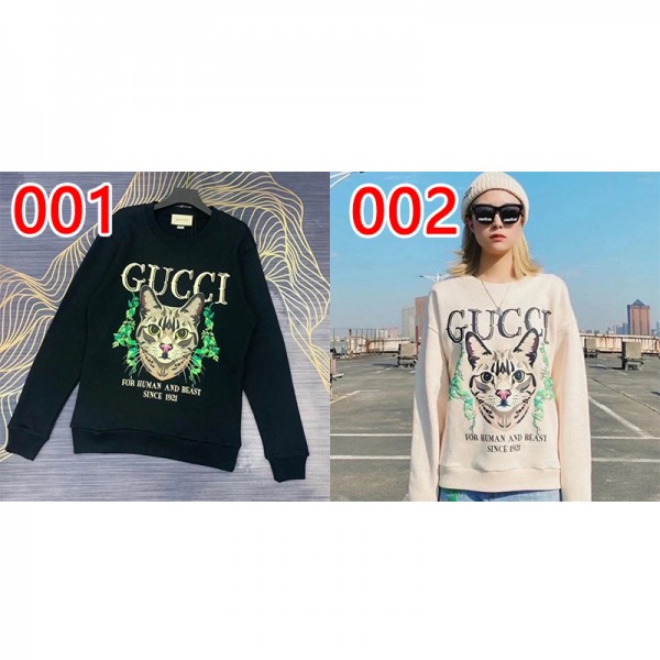 グッチGucciパーカーファッションブランド子供服 親子服 大人服 柔らかい快適スウェット上着レディースメンズ人気 ねこ絵柄 薄い 厚さ選べ秋冬プルオーバー