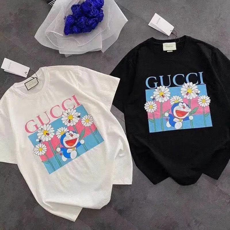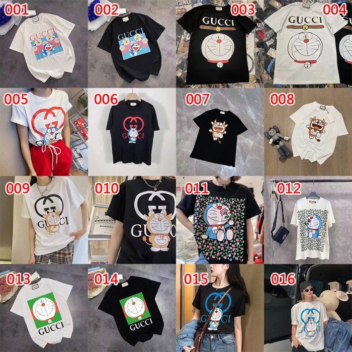 Gucciグッチブランド半袖tシャツかわいいドラえもん丸首tシャツ男女ゆったりT-shirt ポコニャン絵柄 純綿Tシャツ