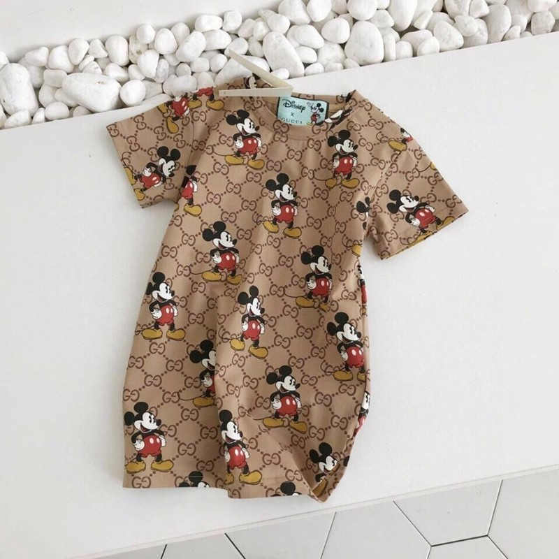 ハイブランドグッチTシャツ子供服男の子と女の子夏服 スカートGUCCIロゴディズニーミッキーパターンラウンドネックかわいい半袖 コットン快適 キッズ ルームウェア セット ショートパンツ