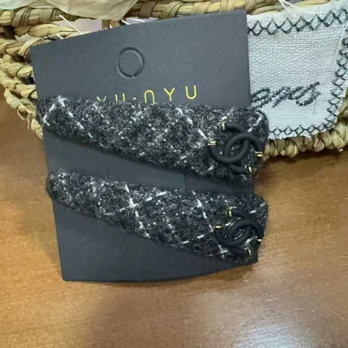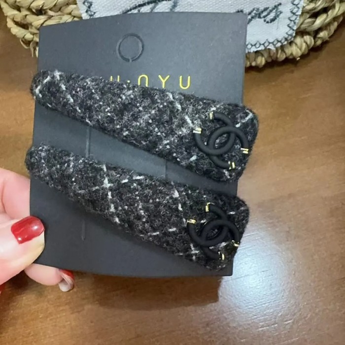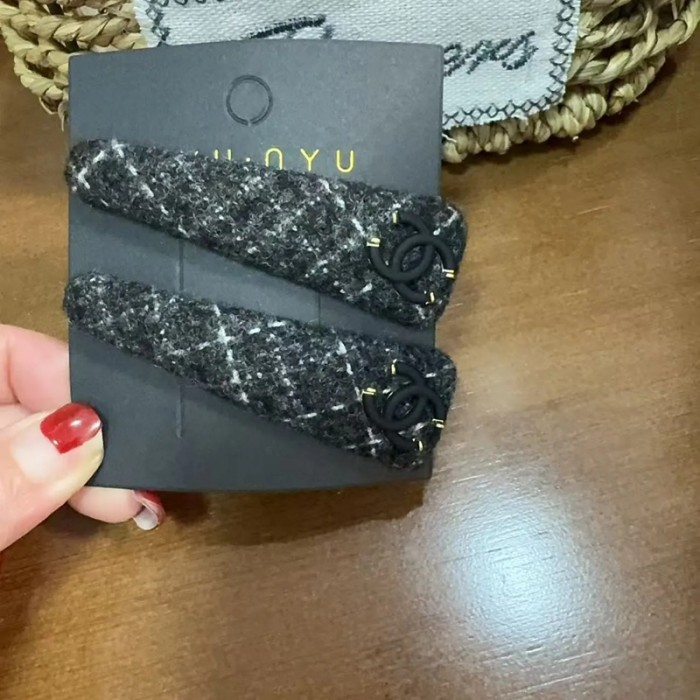 Chanel シャネルブランド前髪クリップ 2枚セット 跡がつかない 黒 ヘアピン 前髪 ツイード ヘアクリップ ヘアピン 髪留め ヘアアクセサリー 女の子 レディース