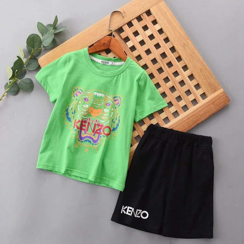 ケンゾーブランドtシャツ半ズボンスーツ子供 男の子女の子コットン高品質tシャツ上下セットかっこいい虎の頭プリント快適キッズスーツ