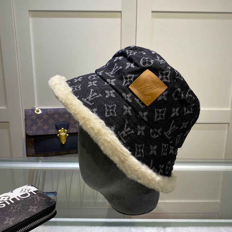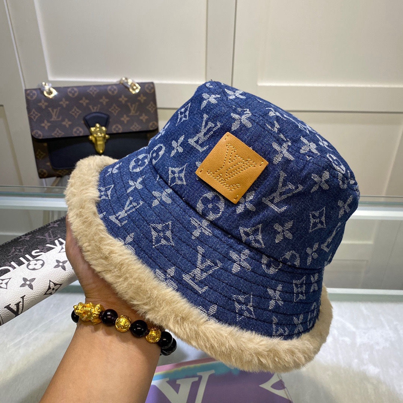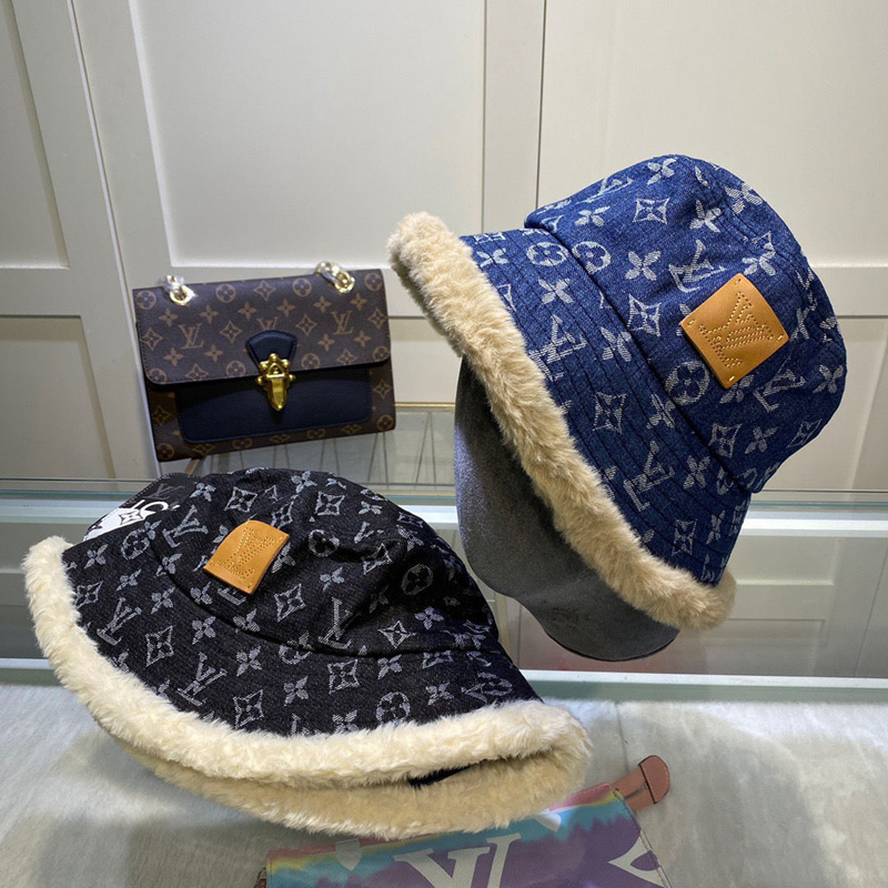 ルイヴィトンブランド漁師の帽子 ハットファッション 秋冬 暖かい バケットハットつば広 もこもこレディースヴィトンデニムキャップ帽子