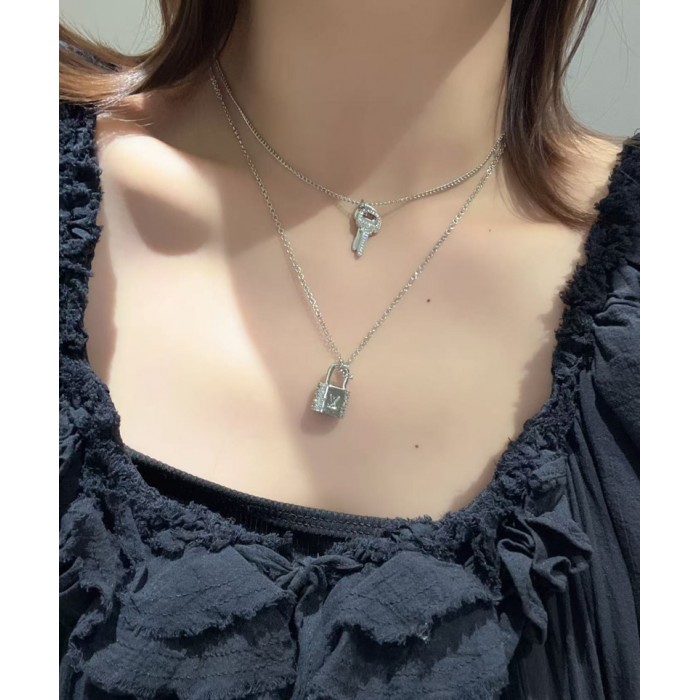 製品名:ブランドlvネックレス レディース 人気 ルイヴィトンチェーン シルバー 金属アレルギー対応 シンプル ジルコニア ロック型 ペンダントネックレス