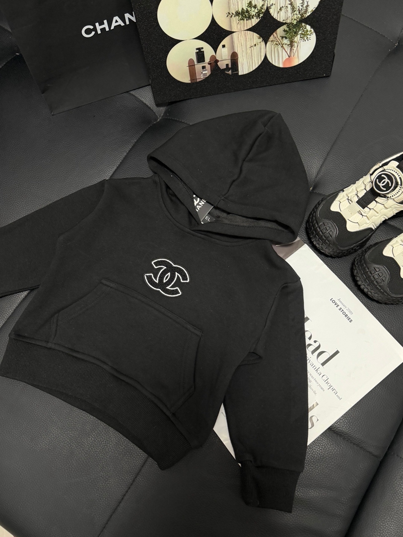 商品名:シャネル子供服 パーカー Chanel キッズ 男の子 女の子 秋 春 スウェット フード付き ブラック 無地 シンプル プルオーバー ボーイズ 柔らかい 快適 フーディー ガールズ ゆったり カジュアル トップス 韓国 お洒落 大きいサイズ 通学 通園 スポーツ