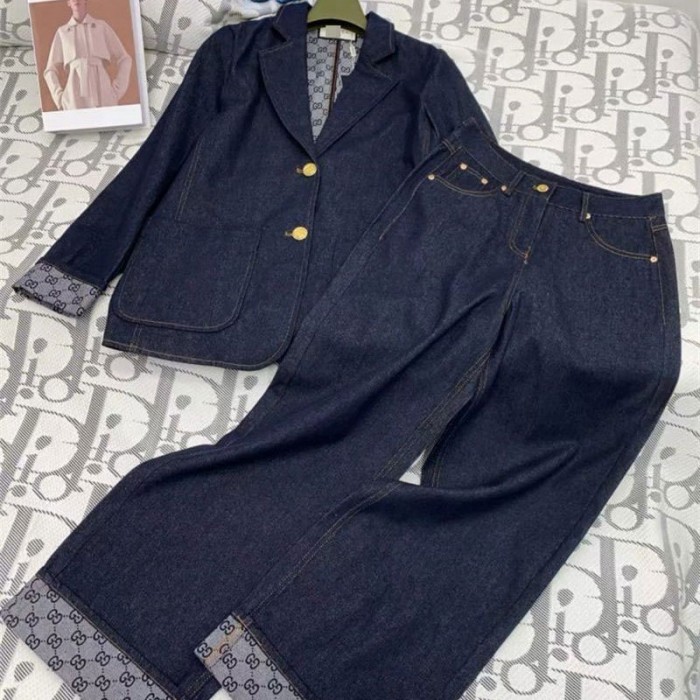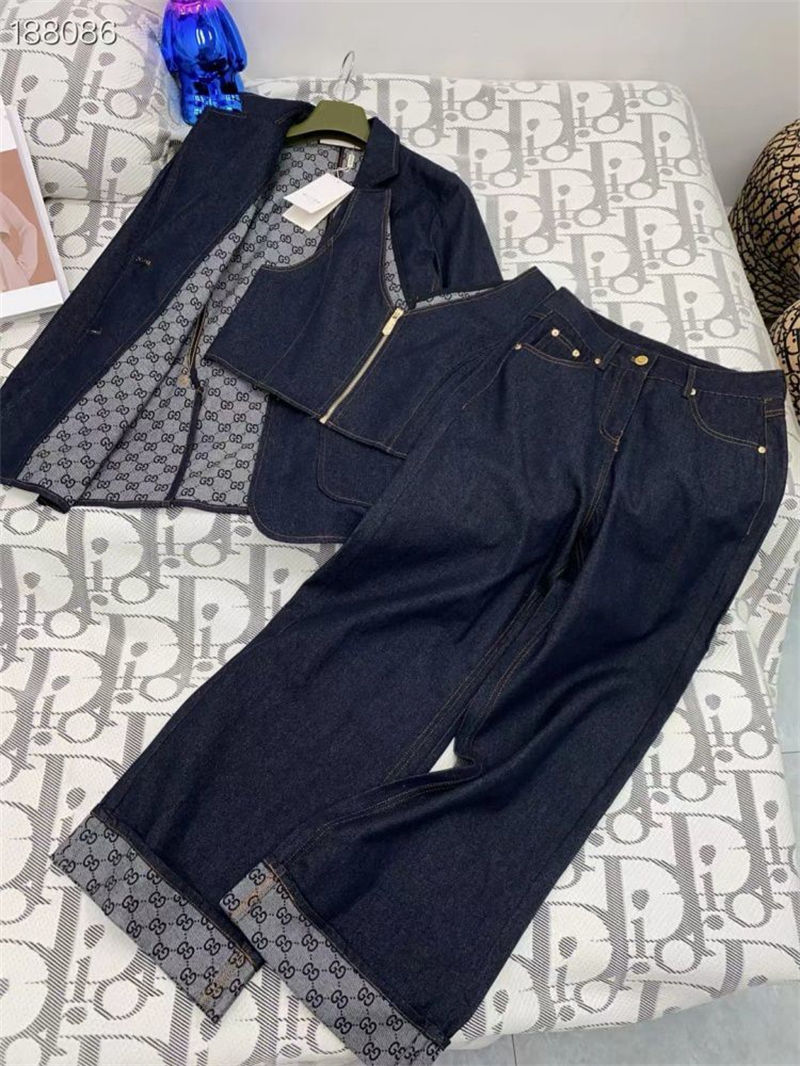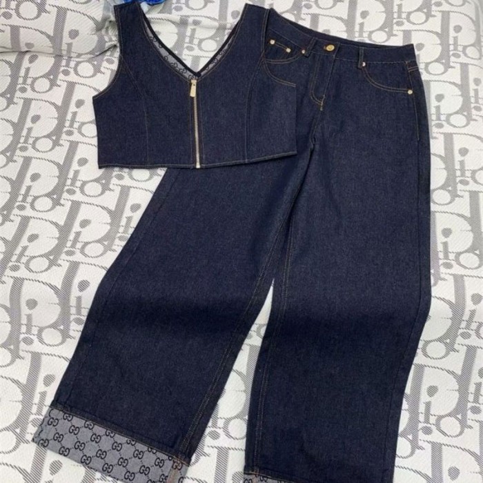 Gucci グッチハイブランドレディース セットアップ 秋 上下セット デニムジャケット タンクトップ ワイドパンツ 3点セットアップ S - XL ジャンパー ロングパンツ かわいい おしゃれ 秋服 カジュアル パーカー ジャージ